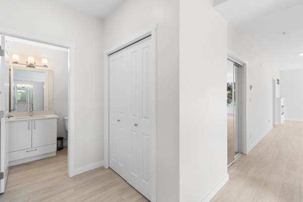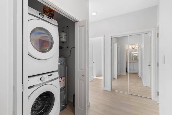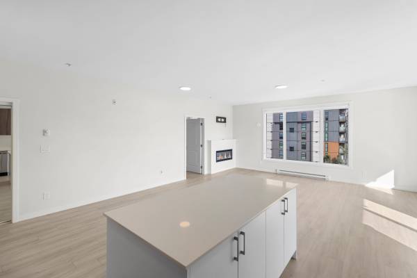 This 1,011 sq. ft. modern condo offers 2 bedrooms and 2 bathrooms, providing a spacious and comfortable living environment. The open-concept layout seamlessly connects the living and kitchen areas to a large balcony, perfect for relaxing or entertaining. The kitchen features quartz countertops, soft-close cabinets, and stainless-steel appliances, including a dishwasher. Additional amenities include in-suite laundry, a main-bedroom en-suite bathroom, an electric fireplace and a storage locker.