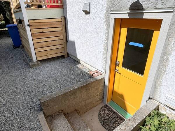 With its own entrance off a gated side garden, the suite is over 850 square feet (75 m2) with windows on all sides. Featuring a charming living room with electric fireplace and adjacent dining area.