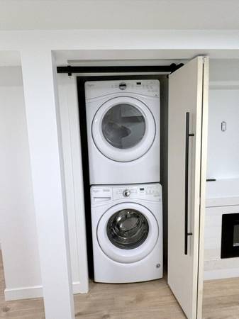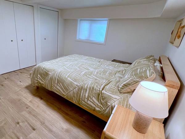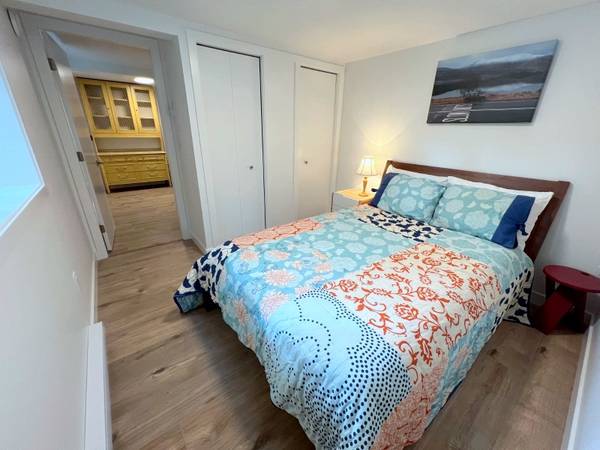 The two bedrooms are furnished with one double bed and a queen size bed. Brand new four-piece bathroom. In-suite full size washer/dryer.
