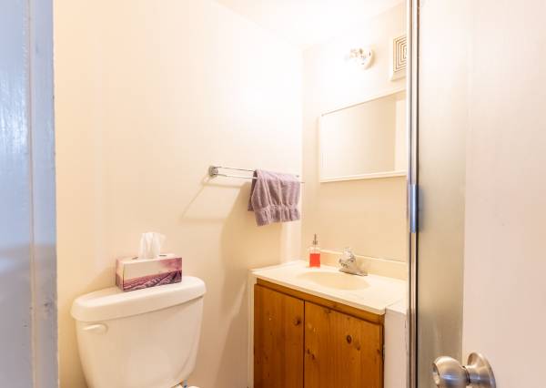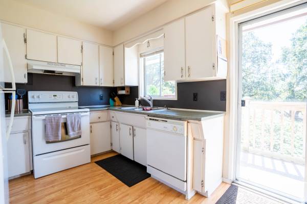 -bright kitchen with dishwasher and access to massive, peaceful, sunny deck: perfect for BBQ's and entertaining friends.