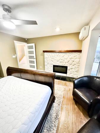 -Year-Round Comfort: Features heated floors (kitchen, hallway, bathrooms), heat pumps & A/C, ceiling fans in every room, 3 fireplaces, new windows/doors and blackout curtains ensure comfort and energy efficiency.