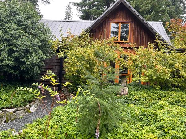 Custom Timber Frame Cottage, 700 sq. ft., furnished, located on private acreage, minutes to amenities and airport; 25 minutes to Victoria; SS appliances, Vancouver Island marble counter tops; BR on main floor; 2nd BR up; maximum 2 people; office space; private parking; beautiful views from every window; private patio; owners nearby in residence; no smoking inside or outside; no pets; $2400.00 per month, utilities included.