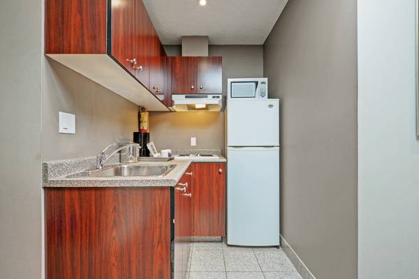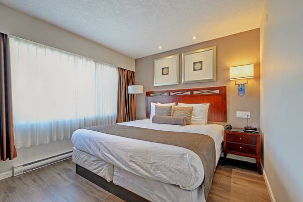 This One bedroom suite is equipped with a private bathroom, a Kitchenette. They are fully furnished with one King bed or two double beds in the bedroom, a Dinning table and chairs, 3 drawers chest, a couch and a flat-screen TV set with full cable channels. Other amenities include complimentary WiFi, private direct phone with auto-answering system and air conditioning. Hydro, Heat, Hot Water, TV/Cable, WiFi, DD phone/Answering system, parking are all included. There is a Laundromat, 24 hours front desk services, restaurant, lounge, bar, cold beer and wine store and an ATM machine on site. Housekeeping /cleaning services are also available upon request for an additional charge ($40/per call).