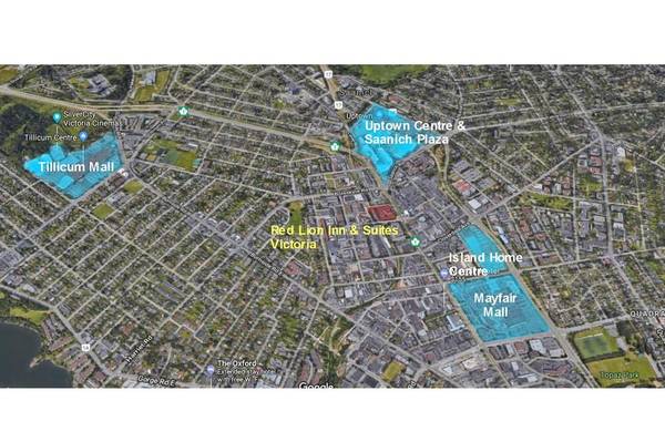 A short walking distance to Uptown Centre (includes Wal-Mart Super Centre, Best Buy, Whole Food, Fitness World, 24hrs Shoppers Drug Mart and many other stores, Restaurants and services), and Mayfair Mall (the largest shopping mall on the Vancouver Island), Saanich Plaza (includes Save-On-Foods, Great Victoria Library), Banks and many other services.