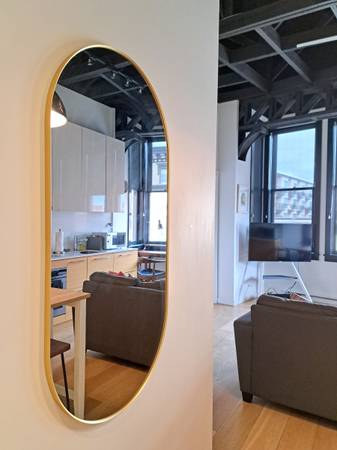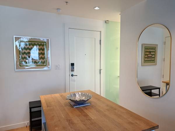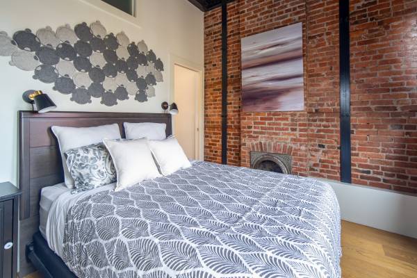 This top floor two-bedroom suite in The Janion heritage building offers a unique living experience, showcasing timeless craftsmanship and rich history. The suite boasts authentic brick walls in the master bedroom, 17 ft ceilings in the living and dining areas, a kitchen with modern appliances, heated floors in both bathrooms, and a versatile second bedroom that comes with a queen size Murphy bed that can be converted into a TV room/den. Other features include wide plank flooring, in-suite laundry, abundant overhead storage, and more. The suite is ideal for two couples or two individuals.