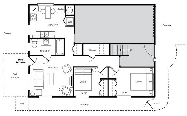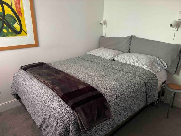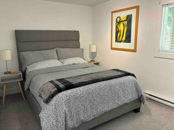Fully furnished. Full kitchen. Washer/dryer in suite. Includes utilities. Please note there is no access to the backyard garden as it is reserved for our family.