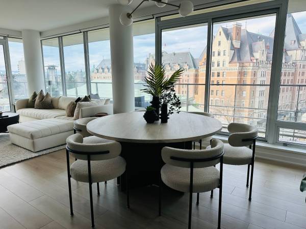 This sun-drenched corner unit offers partial ocean vistas and overlooks the iconic Empress Hotel.