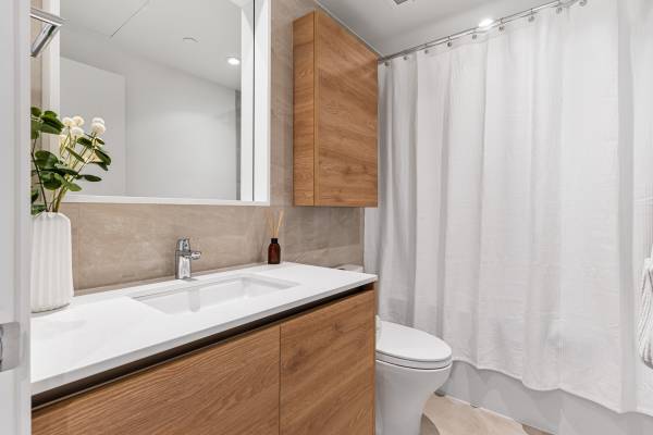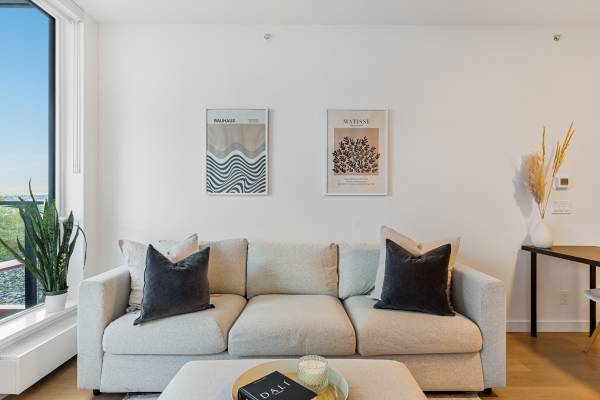 Available December 1st, this 1-bedroom, 1-bathroom fully furnished condo at Dockside Green offers modern living in a convenient, eco-friendly building. The unit includes a fully stocked kitchen with high-end appliances, a king-sized bed, and a balcony with views of the Selkirk Waterway.