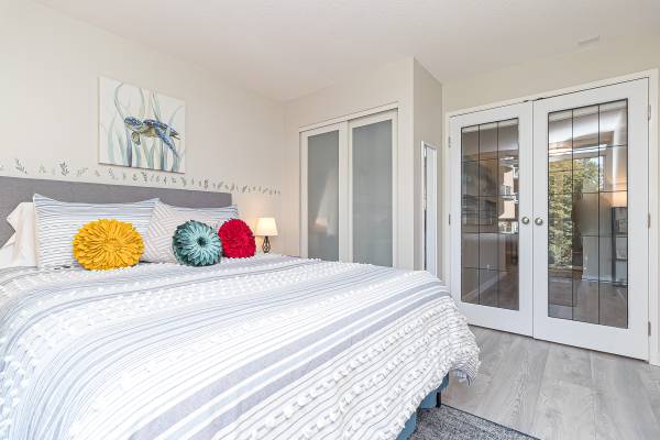 • Spacious primary bedroom features a generous 3 piece en-suite bathroom w/ double closets, Furnished with queen bed, night stands, lamps, bench and dresser.