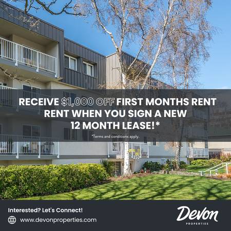Promotion: Receive $1000 OFF First Months Rent When You Sign a New 12 Month Lease *