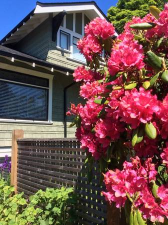 The suite is minutes away by foot from the Cook Street Village with its antique shops, restaurants, sidewalk cafes, grocery stores and hair salons. Fairfield Plaza, also minutes away, has a Thrifty Foods (grocery store), Pharmacy, Starbucks, TC Bank and other stores. A walk into the city centre through beautiful Beacon Hill Park takes less than half an hour. The Parliament Buildings, the provincial museum and Downtown Inner Harbour are a five-minute drive away. The bus stop to the university is down the street.