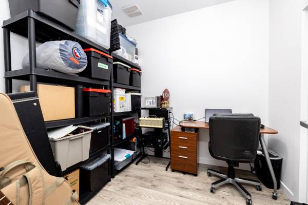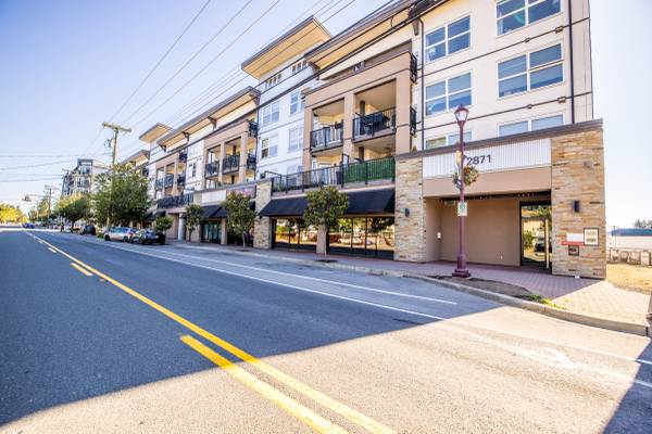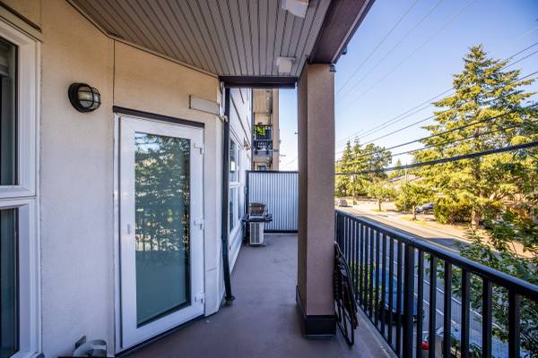 Bright spacious west facing one bedroom and den condo (den can be used as 2nd bedroom or office). Gorgeous and well maintained throughout. Stunning and functional built in shelving separates kitchen and living room. Kitchen has stainless steel appliances and eating bar with more storage, soft close doors and drawers, quartz counter tops and garburator, with a dining area. Wide plank wood floors throughout the living area. Living room has doors to large deck with room for seating, eating, relaxing and BBQing. Heated tile floors in the 4 piece bathroom. Efficient heat pump and A/C, roller blinds and curtains, and in-suite laundry. Commercial office space underneath so no sound from below on weekends or evenings. One parking space, separate storage, and bike storage. Right in the heart of downtown Langford with everything you want and need right at your doorstep, movie theatre, restaurants, shopping, hiking and biking trails, parks, big box stores and on main bus route. Long term tenants, no smoking, no pets! Tenant Insurance is madatory.