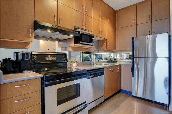 Exquisite Waterfront Suite w/ views of Victoria's Upper Harbour! Embrace the allure of one of the largest one BR units in Mermaid Wharf! Relax with the abundance of natural light pouring through the floor-to-ceiling windows, revealing views of the City & Harbour. Spacious living room featuring a cozy Gas Fireplace, dining area w/ views over the Upper Harbour & delightful reading nook. The kitchen is well-appointed w/ ample Cabinetry, complemented w/ Stainless Appliances & Built-in work desks plus two Balconies! Located steps from Chinatown, McPherson Theater, Market Square, Johnson St Shopping District, Restaurants and so much more! Featuring one secure Underground Parking Spot, Storage Locker & convenient kayak & bike Storage. There is also a rooftop patio with BBQ facilities overlooking the Inner Harbour for Canada Day Fireworks!