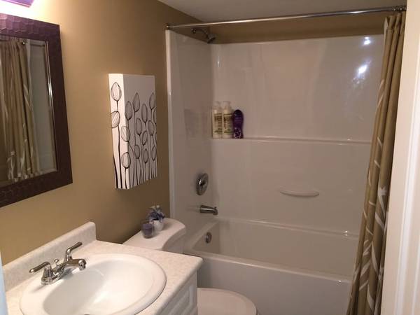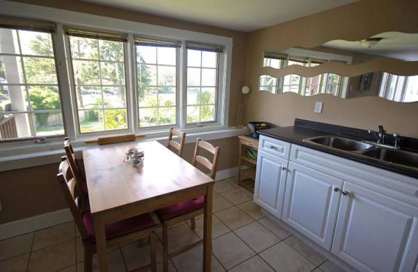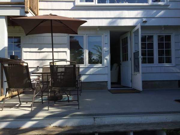 This is a bright lower level suite which opens out directly onto its own deck with BBQ looking over an expansive lawn with a shared waterfront deck and floating dock. Open plan living/eating area (with smart TV and double pullout sofabed), and full kitchen all have windows facing the view. Comfortable queen size bed in the private bedroom, and a 4 piece bathroom. There is also a full-size washer/dryer. There are 2 other suites in the house with quiet, friendly tenants. This suite would be ideally suited for a single occupant longterm, or a couple for a shorter stay. A small pet would considered.