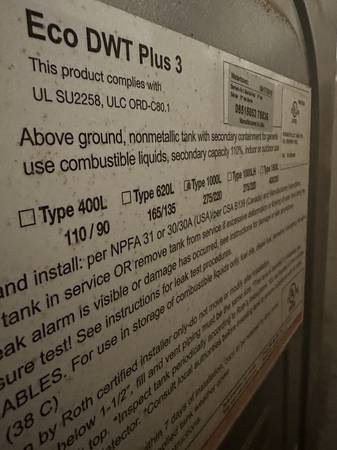Roth Eco DWT Plus 3 Double-Wall Oil Tank - Excellent Condition - $900 (Oak Bay)