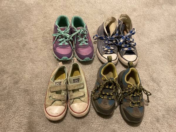 Four pairs for $30 or $10 each or make an offer. Purple saucony size 13M Blue converse high tops size 13 Light turquoise converse size 10 LL Bean trail shoes size 10