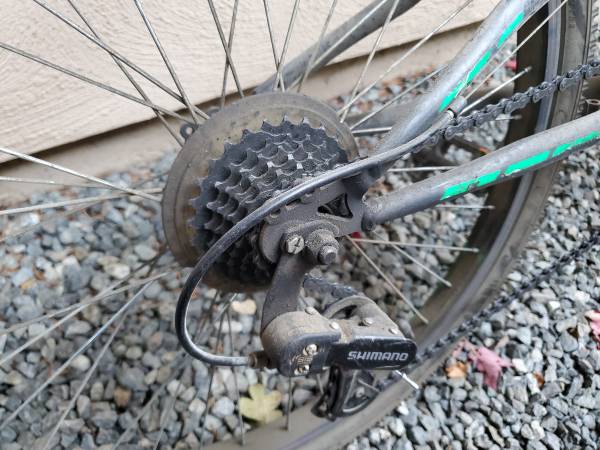 Grey green supercycle, well used, still in good condition. 21 speed, full suspension.