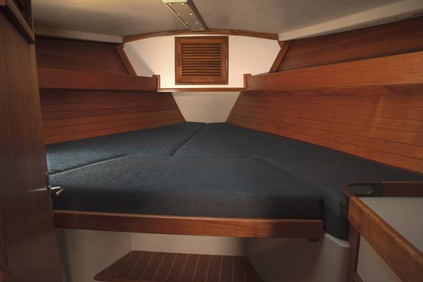 Sleeps 6, with Nav station to Port and Quarter Berth aft, Galley Starboard with a double sink,