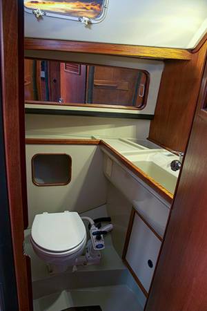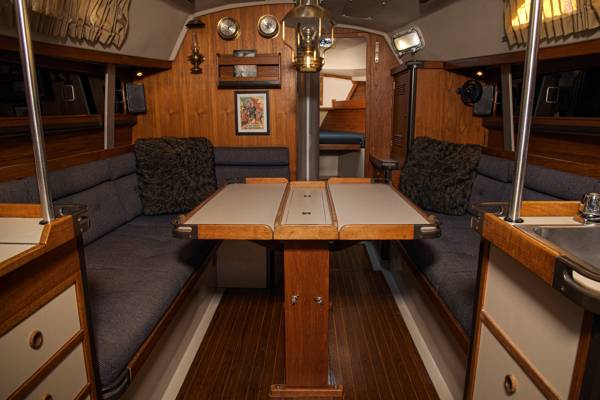 C & C 37 Mk II is swift and powerful. It is a well built traditional sailboat, blending good sailing attributes for performance or just heading out on a cruise. In the cockpit or moving about the decks this design is quite comfortable, and has a pleasant and spacious cruising interior below decks. The layout is very sensible, with a good use of the space from bow to stern, with ample storage. You will find it comfortable on a mooring or underway. The Genoa sheeting tracks on the C & C 37 Mk II are closer to the centre-line, this allows sheeting the foresail in and squeezing out an extra measure of upwind performance. Her double-spreader rig is soundly engineered and built with the best materials and fittings. The C & C group of designers were some of the most successful hull designers in the world, teamed with industrial designers. These men knew yachts, resulting in innovations in many areas that are important when you think about an investment you make in purchase of a C & C 37 Mk II. GLOOSCAP II carries their unique deck-to-hull joint, and there isn’t one more secure in the world.