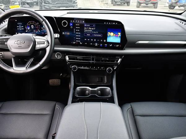 LCD display with Google built-in (navigation, connected apps, driver profiles, natural voice), wireless Apple CarPlay® & Android Auto, dual-panel panoramic sunroof, rear view camera with Hitch Guidance/Hitch View; Chevy Safety Assist, keyless entry with push-button start
