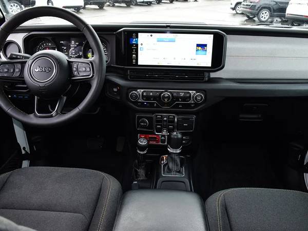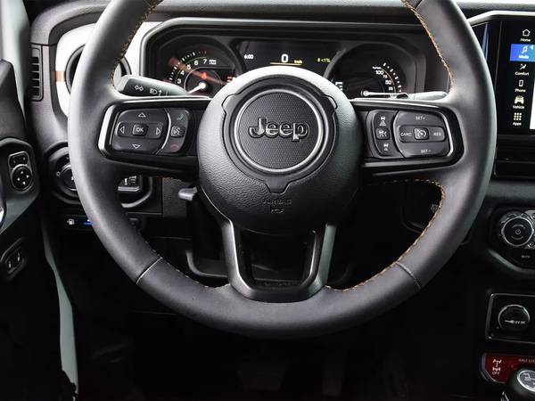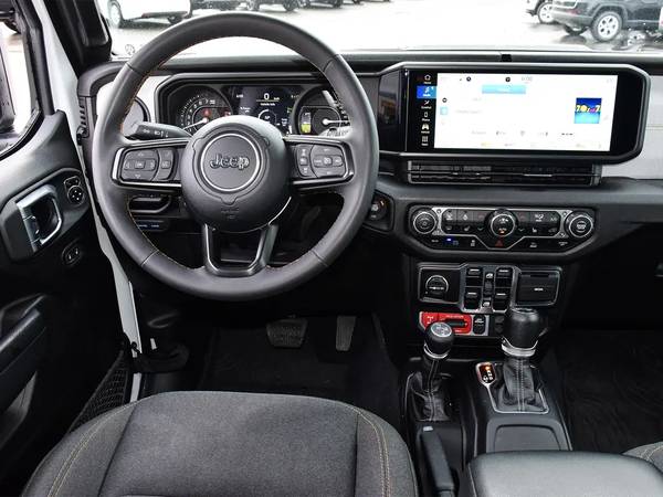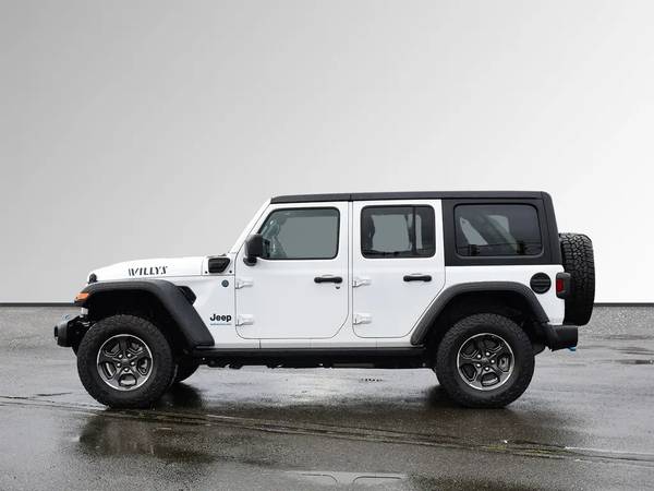 WILLYS 4xe hood decals, 4xe 4-Wheel Drive swing-gate decal, gloss-black sport grille, rock-protection sill rails, LED reflector headlamps & LED fog lamps, front heated seats, heated steering wheel, remote proximity keyless entry, remote start, universal garage door opener, Uconnect® with Apple CarPlay® & Android Auto™, Bluetooth