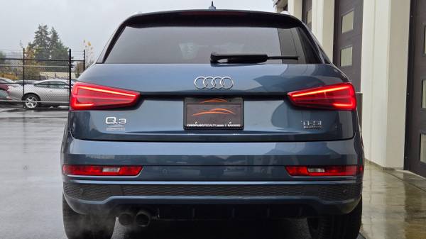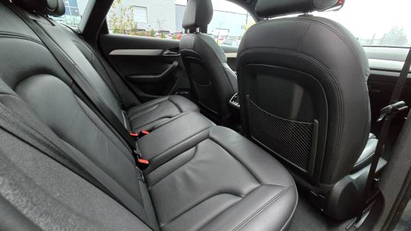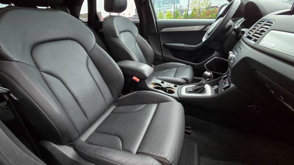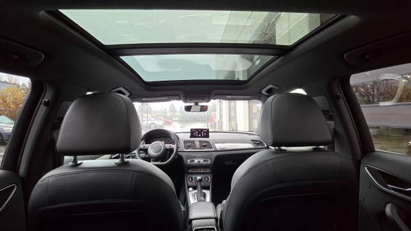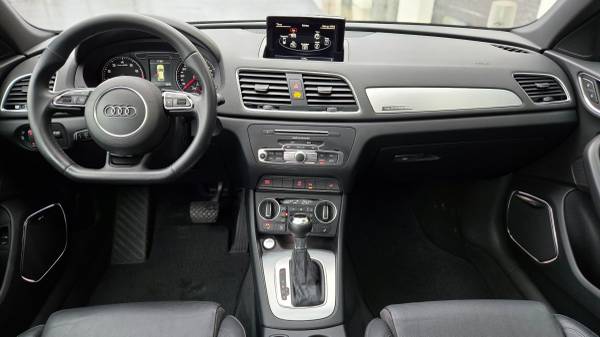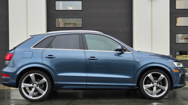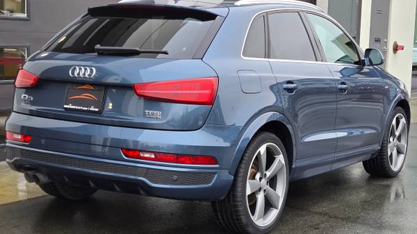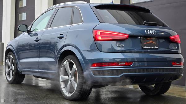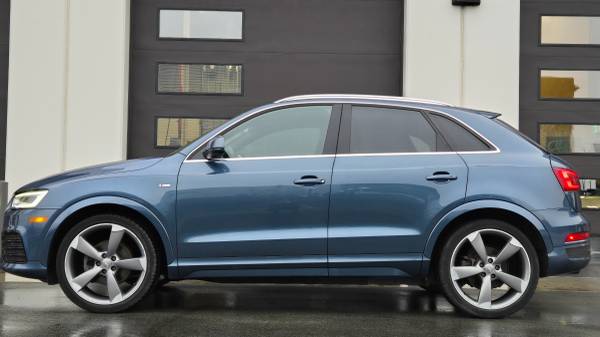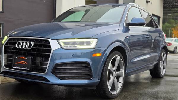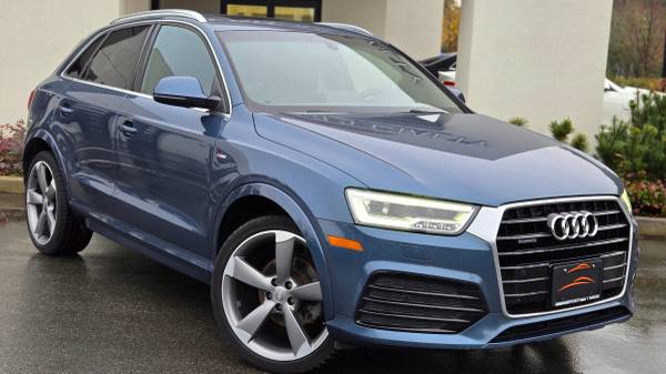 Beautiful Audi Q3 Technik S-line! Featuring a spotless Carfax. Report is available to review. Powered by the fuel efficient yet capable Turbocharged 2.0l inline 4cyl producing 200 horsepower/207 lb tq. Put this power to the ground through the 6 speed shiftable automatic with dynamic drive selections and Quattro AWD. Outside stands out finished in stunning Utopia Blue Metallic accented by chrome trim and sitting on open faced 5 spoke 19" alloy wheels. Hop into the inviting interior upholstered in premium black leather accented by alloy trim throughout. Very well equipped with options such as Navigation, Premium BOSE brand speakers and sub, am/fm/sat radio, CD, USB and memory card media. Comfort options include power heated front seats with memory, dual climate control and Panoramic sunroof. Overall a beautiful compact SUV sure to impress.