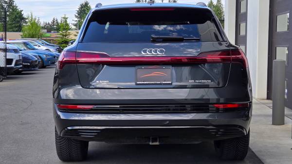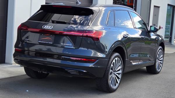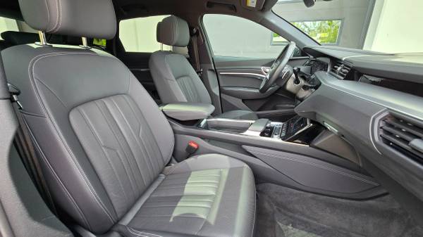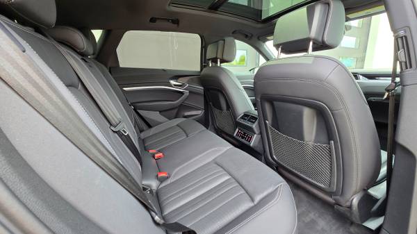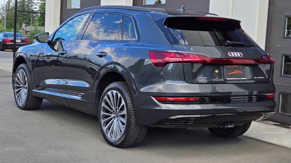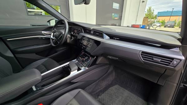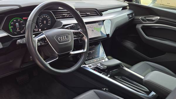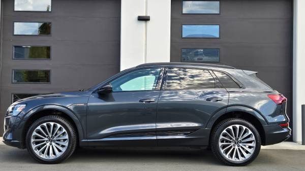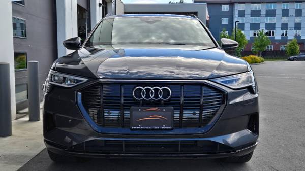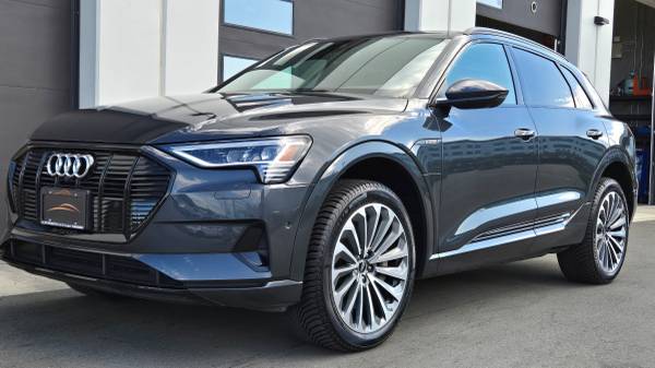 Fantastic condition Audi E-Tron! Spotless one BC owner history showing just one glass claim. Full Carfax is available to review. Capable electric motor produces 402 horsepower and 490 lb torque offering a tow capacity of 4000lbs. This unit is equipped with a hitch receiver. 1 Speed direct drive transmission with paddles and AWD create a very smooth driving experience. Enjoy the sleek exterior design finished in high gloss Manhattan Grey Metallic accented by Black Optics package offering all black grille, trim and roof rails. Sitting on optional multispoke 21" wheels this EV SUV is strikingly beautiful sure to turn heads. Inside you are instantly greeted by luxurious black leather with contrast stitch throughout, accented by alloy and piano black trim. This interior is the pinnacle of Modern Luxury. Very well equipped with power front seats with heat and memory, heated steering wheel, panoramic sunroof, Bang & Olufsen premium sound, infotainment system with Navigation, Android Auto/Apple Carplay, rear view camera with 360 view, heated rear seats with dual climate control. Simply too much to list, an absolute must see to appreciate!