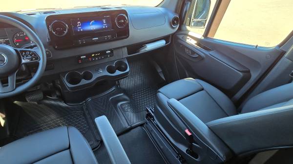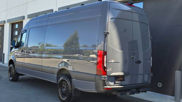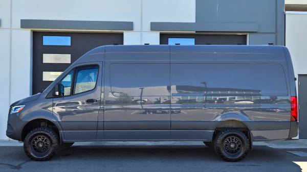 Don't miss this fantastic opportunity to create the Overland 4x4 Sprinter build of your dreams! 2022 Sprinter 2500 4x4 170" High roof van with under 5,600km! Turbo diesel 6 cl producing 188 horsepower and 325lb torque giving this cargo van a tow capacity of 5000lbs and a max payload of 3,417lbs. Pair this to the 7 speed shiftable automatic with paddle shift and 4x4 with hi-lo gear selection you get a very capable platform for whatever you decide to build. Outside stands out in a crowd of white vans finished in Graphite Grey paint sitting on aftermarket Black Rhino Hard alloy wheels wrapped in BF Goodrich Ko2 All Terrain tires Load Range E. This unit also features factory mounting rails for a roof rack and a trailer hitch receiver with 7 pin plug. Inside the cockpit is roomy and comfortable with tons of built in storage including above the windshield and along the top of the dash. Very well equipped with heated driver/passenger seats, multi function steering wheel, Infotainment system with Apple Carplay/Android Auto, Navigation and much more. There is a Queen bed frame already built with tons of storage space underneath. Bring your dream build to life with this ready to go Sprinter!