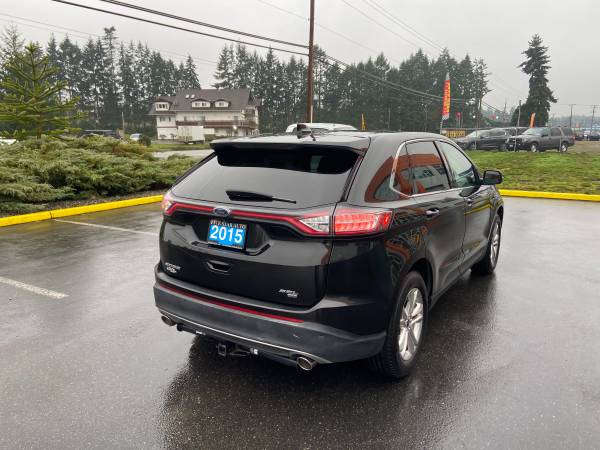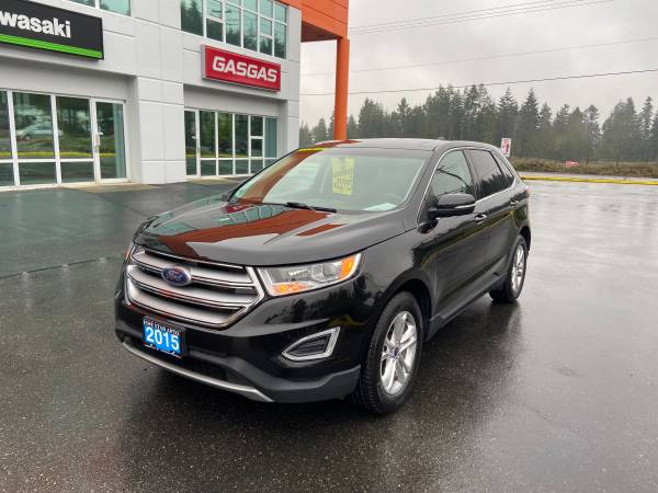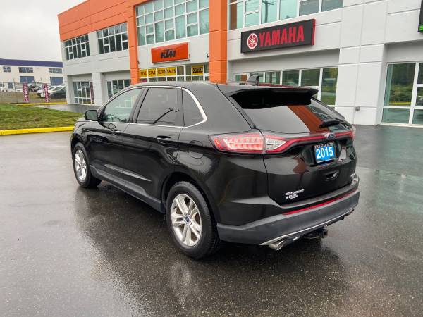 Financing Available, 2015 FORD EDGE SEL AWD, 3.5L V6, Local Vehicle, Only 127,300Kms, Tuxedo Black, Michelin M+S Tires, Black Leather Interior, Heated Seats, Massive Sunroof, Back Up Camera, Bluetooth, USB Plug In, Navigation, Lane Departure Warning, 18" Alloy Wheels, Great Factory Sound System, PWR Windows, PWR Locks, PWR Mirrors, Key Lees Entry, Push Start, Rear Seats Lie Down, Great Family Vehicle, Roomy Interior, Trailer Tow Package, Very Well Kept, On Consignment To Us, For Sale At Five Star Auto Sales DL#8726 We Are Located At 969 Fairdowne Rd Parksville Next To Spunky's Motorcycle, On Sale For $15,995 Plus $395 Doc Fee And Taxes, Call Or Text Jacob For Viewing show contact info