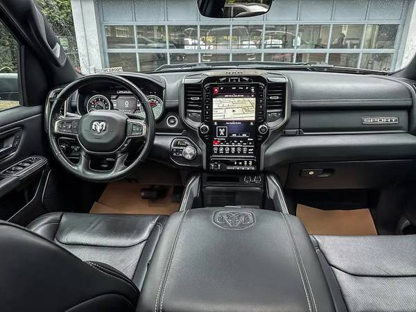 This 2021 RAM 1500 Sport 4x4 comes with LEATHER/HEATED/VENTED Seats, a heated/leather wrapped steering wheel, Google Android Auto, Apple CarPlay capable, 12-inch touchscreen with Navigation, Power Dual-pane Panoramic Sunroof, Parkview rear-view camera, sport performance hood, Comfort & Convenience Group with Second-row heated seats, Driver seat with memory setting, Wireless charging pad; 9 Alpine speakers with subwoofer; Level 2 Equipment Group, Power running boards, Rear wheelhouse liners, Class IV hitch receiver, Trailer Brake Control, custom bed canopy and much more!
