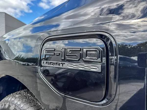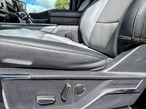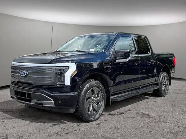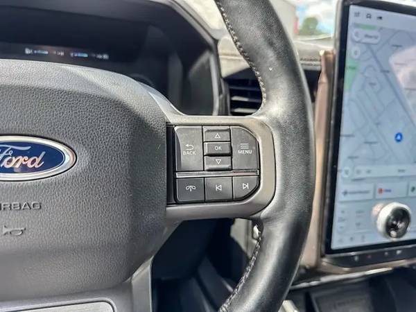 This 2022 Ford F-150 Lightning Lariat equipped with leather/heated seats, power front seats, navigation system, SXM radio, automatic daytime running lamps, fog lamps, running boards, rear park assist, a class IV hitch receiver, alloy wheels, and even more.