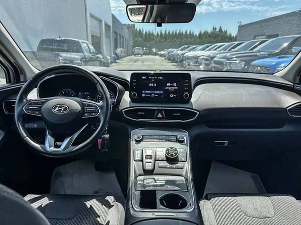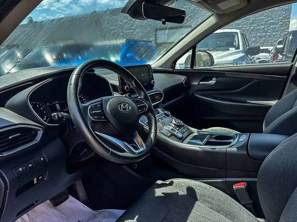 This Hyundai Santa Fe features seating for 5, heated front seats, a heated leather wrapped steering wheel, Apple Carplay/Google Android Auto, manual front seats, single zone air conditioning, cruise control, Bluetooth, back-up camera, automatic daytime running lamps, fog lamps, rear tinted windows, as well as alloy wheels and much more.