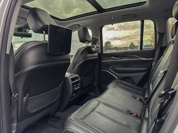 This Grand Cherokee 4XE model features leather faced seats with perforated suede inserts, heated front seats, a power 8 way adjustable driver seat with power 4 way driver lumbar adjust, 4G LTE Wi-Fi hot spot, 8.4-inch display, NAVIGATION, a/c with dual zone temperature control, Sirius XM Traffic and Travel Link, a leather wrapped and heated steering wheel with mounted audio controls, 9 Alpine speakers with subwoofer, rear 60/40 split folding bench seat, Luxury Tech Group II with Front ventilated seats, Second-row manual window shades, Auto-dimming exterior driver mirror, Auto-dimming digital display rearview mirrors, Passive entry - front doors, rear doors & liftgate, Rain-sensing windshield wipers, Rear back-up camera washer, Memory steering column, Wireless charging pad, Power tilt/telescope steering column, Surround View Camera System, Park-Sense Front and Rear Park Assist with stop, Integrated Off-road camera, Intersection collision assist system, Rear Seat Video Group I with Seatback video screens, USB video port, Amazon Fire TV Built-In, Quadra-Trac II 4x4 system, tow tooks and the Selec-Terrain Traction Management System and much more.