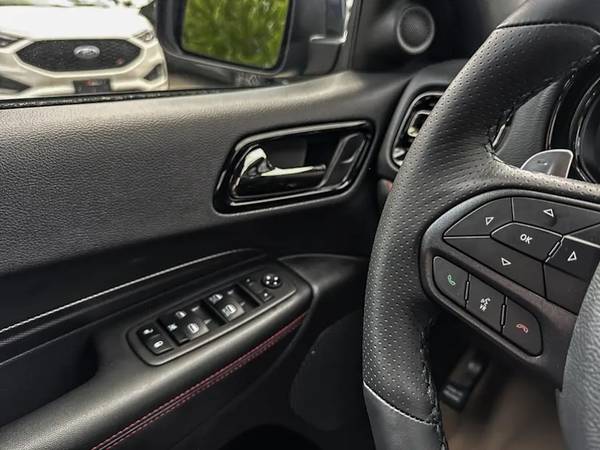 This 2023 Dodge Durango GT Rallye AWD features cloth seats, 3rd row seats, Hands-free communication with Bluetooth streaming, Power liftgate, Remote start system, front and rear park assist; APPLE CARPLAY & ANDROID AUTO, Blacktop Package with 20x8 -inch Black Noise aluminum wheels, Satin Black Dodge tail lamp badge, Gloss Black GT badging; Black roof rails and Integrated roof rail crossbars just to name a few!