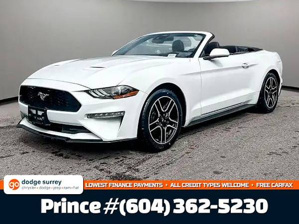 Some features in this beautiful WHITE Mustang Convertible include CLOTH SEATS, BACK-UP CAMERA, REAR PARK ASSIST, SXM RADIO, dual-zone climate control with air conditioning, APPLE CARPLAY & GOOGLE ANDROID AUTO, cruise control, Bluetooth, push button start, alloy wheels just to name a few!
