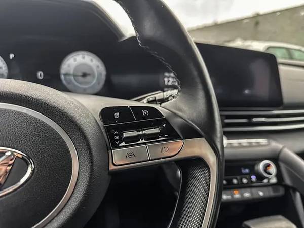 This 2023 Hyundai Elantra Preferred Package features HEATED FRONT SEATS & HEATED LEATHER WRAPPED STEERING WHEEL, POWER SUNROOF, BLIND-SPOT MONITORING SYSTEM, BACK-UP CAMERA, Android Auto & Apple CarPlay, 7-inch touchscreen, Bluetooth, air conditioning with manual temperature control, cruise control, rear 60/40 split fold rear seatbacks, remote keyless entry system with an alarm, power door locks and windows with driver's auto down, automatic headlamps, alloy wheels, a black front grille, Anti-Lock Braking System with Electronic Brake-Force Distribution and Brake Assist, Vehicle Stability Management, Electronic Stability Control, Traction Control, and is powered by its 2.0L MPI Atkinson 4 cylinder engine.