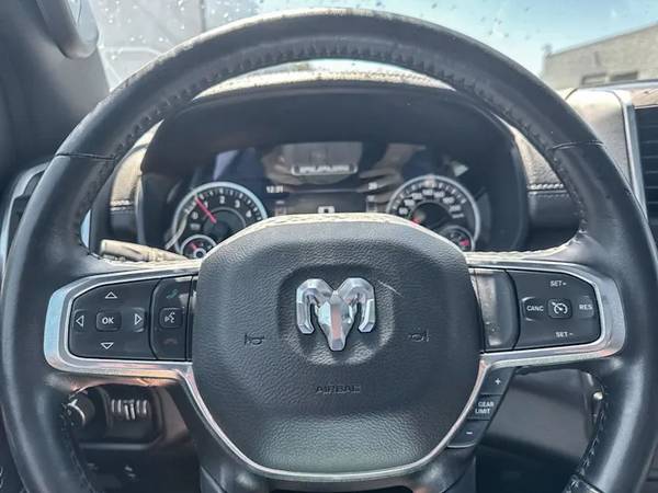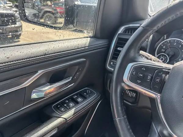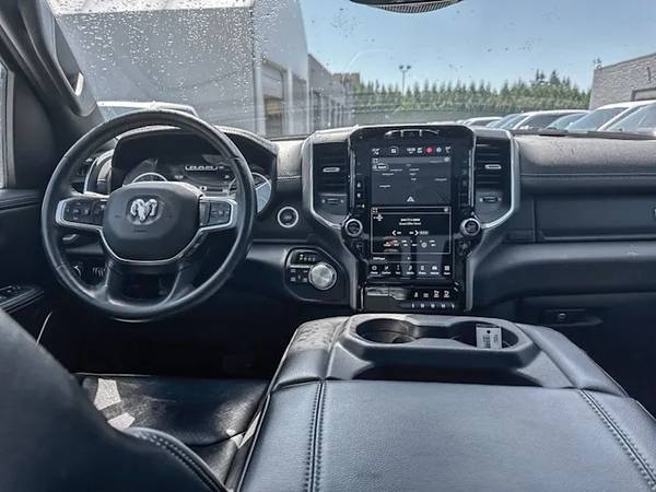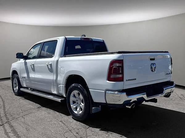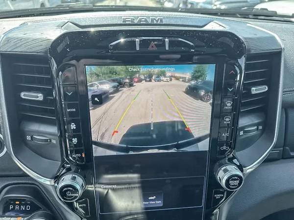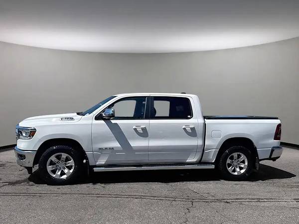 This 2023 Ram 1500 Laramie Crew Cab 4x4 features LEATHER HEATED FRONT SEATS, REAR PARK ASSIST, a leather wrapped and HEATED steering wheel, power 8-way driver seat and 6 way passenger seat, Apple Carplay/Google Android Auto, rear 60/40 split folding seat, a/c with dual zone temperature control, Uconnect 5W Nav with 12-inch display and Sirius XM Satellite radio, Rear Wheelhouse Liners, Bright wheel-to-wheel side steps, Laramie Level 1 Equipment Group, Class IV Receiver Hitch and more.