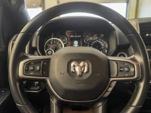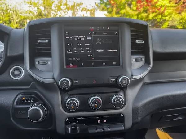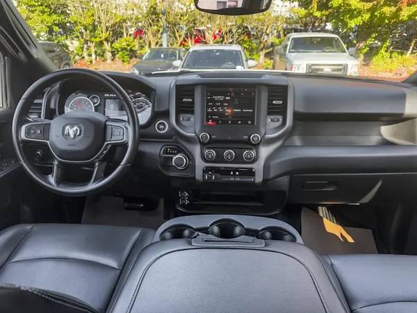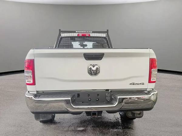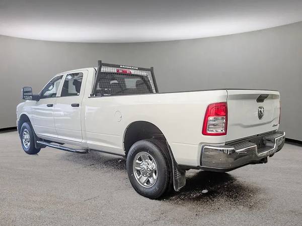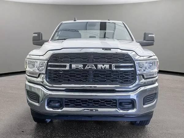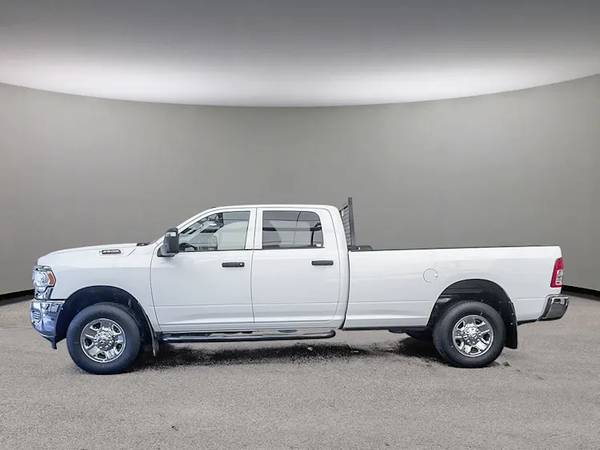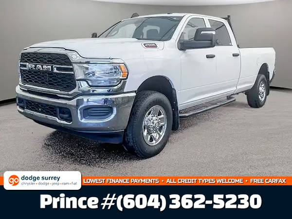This Ram 2500 Tradesman Crew Cab 4x4 comes with vinyl 40/20/40 split bench seat, Uconnect 5 with 8.4-inch display and a 3.5-inch full-colour in-cluster display, air conditioning, cruise control, a leather wrapped steering wheel, remote USB port; Tradesman Level 1 Equipment Group; Exterior mirrors with supplemental turn signals, Exterior mirrors with courtesy lamps, Instrument panel-mounted auxiliary switches, Anti-spin differential rear axle, Rear wheelhouse liners, 189-litre (50-gallon) fuel tank, Trailer Brake Control, Trailer Light Check, Protection Group, Tow hooks, Chrome Appearance Group, 18x8-inch chrome-clad steel wheels, 3.73 rear axle ratio and more!