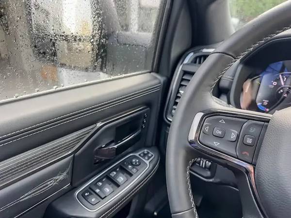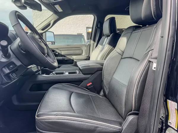 This 2024 Ram 3500 Limited 4x4 features NAVIGATION, BACK-UP CAMERA, LEATHER HEATED FRONT SEATS, POWER SUNROOF, power driver seat, a leather wrapped steering wheel, Bluetooth, a/c with dual zone temperature control, rear 60/40 split folding seat, Off-Road Info Pages, Trailer Tow Pages; Heavy-Duty Snowplow Prep Group with 220-amp alternator; 6.7L Cummins I-6 HO turbocharged diesel engine, 9 Alpine speakers with subwoofer; Instrument panel-mounted auxiliary switches, Rear auto-levelling air suspension; 6-speed AISIN heavy- duty automatic transmission plus more!