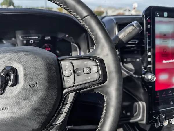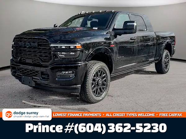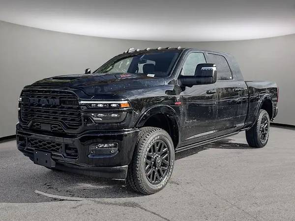 This 2025 Ram 3500 Limited 4x4 features NAVIGATION, BACK-UP CAMERA, LEATHER HEATED FRONT SEATS, POWER SUNROOF, power driver seat, a leather wrapped steering wheel, Bluetooth, a/c with dual zone temperature control, rear 60/40 split folding seat, Bifunctional LED projector headlamps, Automatic high-beam headlamp control; 5th Wheel & Gooseneck Towing Prep Group; Night Edition with Sport performance hood, 20x8-inch Night Edition Black aluminum wheels; Instrument panel-mounted auxiliary switches, Rear auto-levelling air suspension; Limited Level 1 Equipment Group plus more!