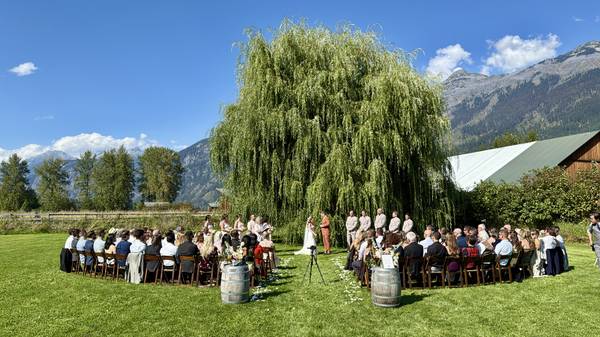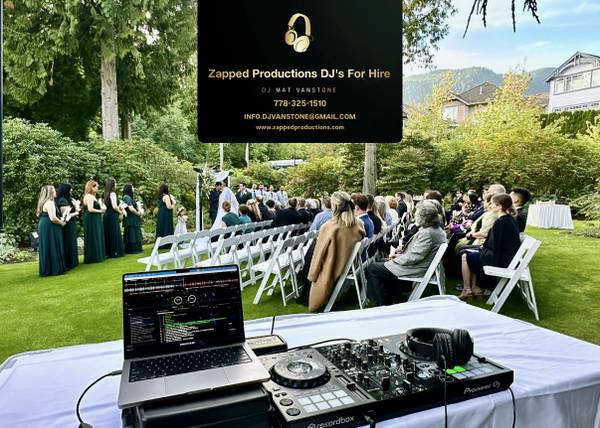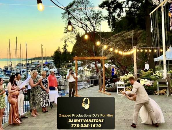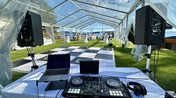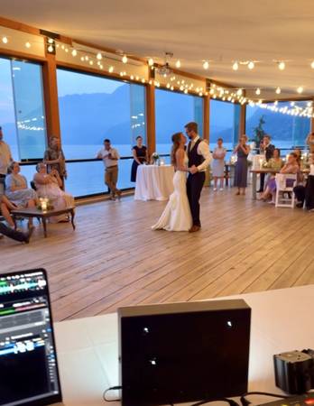 Our package includes big speakers, wireless microphone for vows/speeches, and dance floor lighting. MC Announcements included in our price. We service the Vancouver Island, Lower Mainland, Sea To Sky and Okanagan.