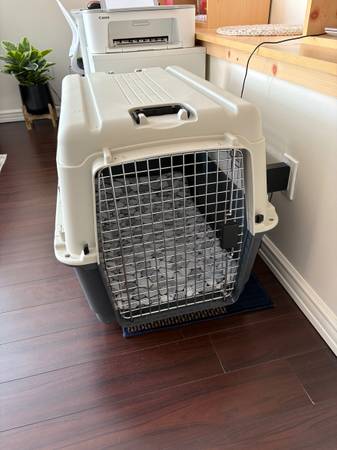 32” x 22” x 23” Essentials Pet Crate with separate comfy mattress, they are in brand new condition, clean and spotless. Carrier comes with castor wheels and water/food dish but I didn’t put them on. Purchased the carrier from Bosley’s 5 months ago for $134.99 plus taxes, and the mattress pad was $35.99. I still have the receipt for the carrier. Selling because I no longer have a dog.