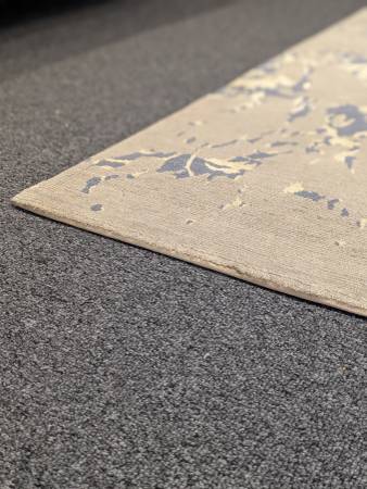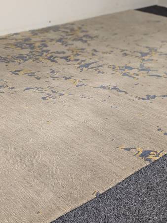 Abstract Rug Original Price Est by Consignor: $3,500.00 Our price: $698.00 Brand: Unknown Material : Unknown Color: Green, Grey, Yellow and Blue Tones Dimensions (inches): - 96" - 72.5" Length