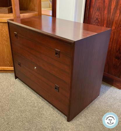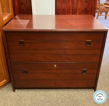 Find this outstanding mid-century modern rosewood file cabinet by Mobican for only $849.00 at Charmaine's Past and Present! We are located at 1083 Fort St. (just before Fort St. reaches Cook St.) and are open from 10am-5pm Monday through Saturday, so don't hesitate to come by the shop for a closer look, give us a call at show contact info