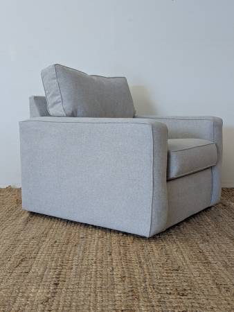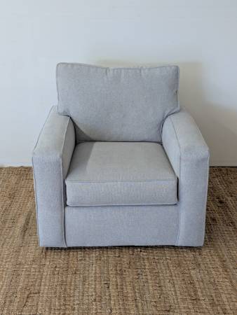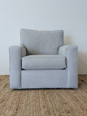 Description: The chair swivels. Original retail price: $2,549.00 as optioned, per chair Model: Comfort Square Arm Swivel Chair, Dove Performance Heathered Basketweave Color: Grey Measurements:...