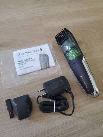 For sale is a Remington Vacuum Beard Trimmer. It has an adjustable guard w/ 13 Length settings (2-18mm) and an edge trimmer head. Comes with manual, cleaning brushes and power cable. It's clean, works great, and it catches about 95% of the trimmings. Just selling the one I kept for travel.