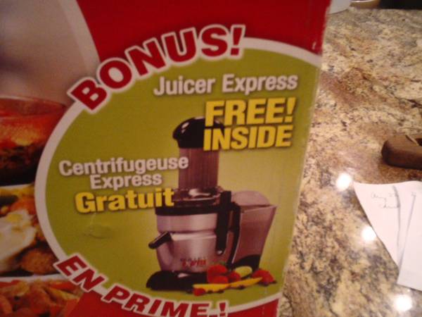FOOD PROCESSOR AND JUICER. BRAND NEW - NEVER USED. UNUSED WEDDING GIFT. AS SEEN ON T.V. RETAIL WAS $150. IN ORIGINAL BOX - UNOPENED - SO CAN ALSO BE GIVEN AS GIFT. CAN BE SEEN AT UPLANDS HOUSE IN...