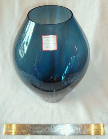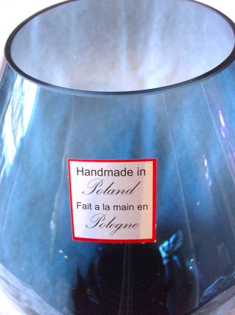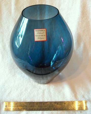$ Reduced from $120.00. This beautifully handcrafted, hand-blown Polish made blue glass vase was bought years ago, during my obsessive cobalt blue glass collecting period. I never used it for anything, and forgot I had it until I started unpacking my boxes in storage this year. Size approx. 8.5” W x 11.5” T. Condition: Nearly flawless, except for 2-3 very small air-bubbles. PLEASE NOTE: Thank you for looking at my post. I check my emails 1-2 times daily, but may be delayed due to my disabilities, which require me to visit hospital. The exchange must be in-person, with cash, at pre-arranged pick-up at my location. If your out of the area, please have family, friend, or arrange courier service to pick-up on your behalf. Hope to hear from you soon.