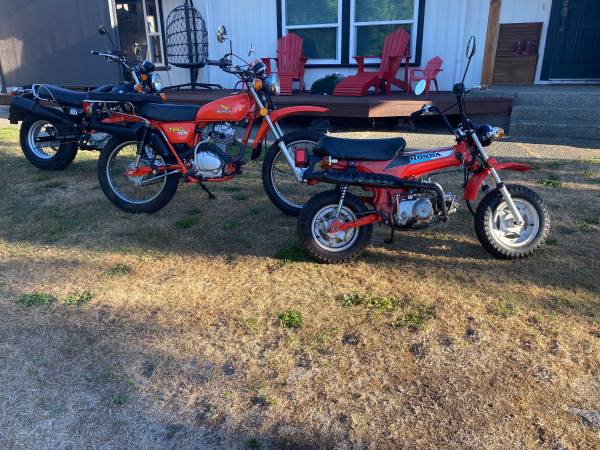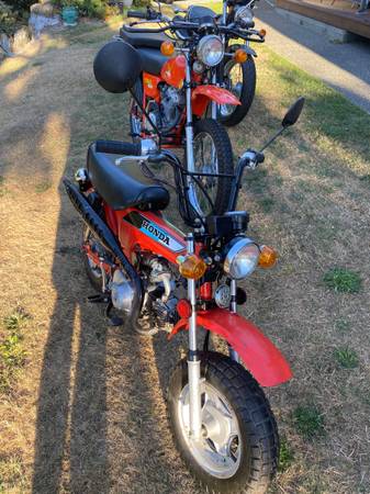Mini trail Honda ct70. 1981. 3 speed automatic. Original tool kit and owners manual. plated for road use. $3500 1977 Honda Ct125 trail great condition. kept indoor. low miles . plated for road use....