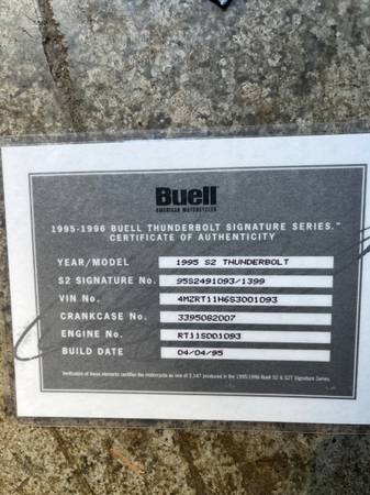 My 1995 Buell S2 Thunderbolt, number 1093 out of 1399 produced.